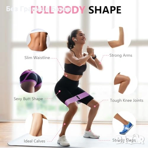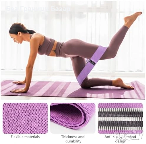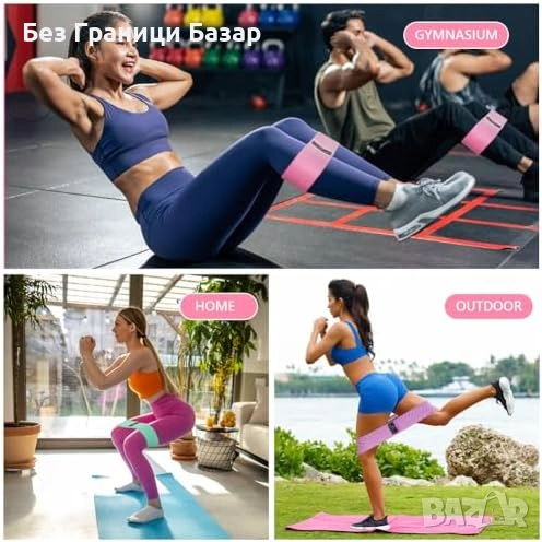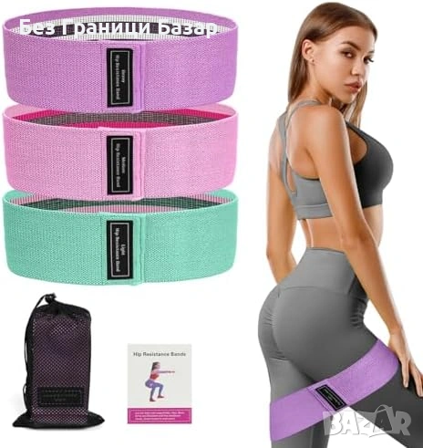 Нови Текстилни фитнес ластици за дупе и бедра 3 нива на съпротивление спорт тренировка