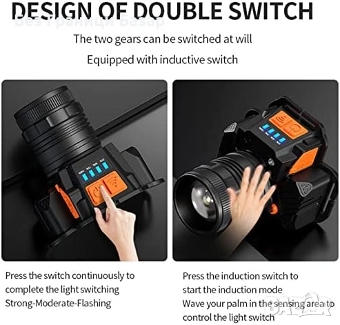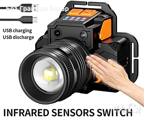 Нов Супер ярък LED челник USB, сензор за жестове, лек и водоустойчив уред глава