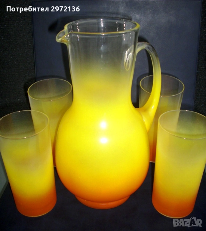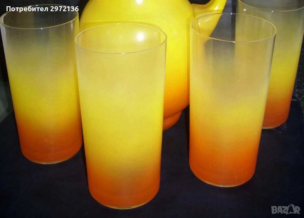 Чаши и кана за фреш матирано цветно стъкло, снимка 1 - Сервизи - 53131189 Чаши и кана за фреш матирано цветно стъкло, снимка 2 - Сервизи - 53131189 Чаши и кана за фреш матирано цветно стъкло, снимка 3 - Сервизи - 53131189 Чаши и кана за фреш матирано цветно стъкло, снимка 4 - Сервизи - 53131189 Чаши и кана за фреш матирано цветно стъкло, снимка 5 - Сервизи - 53131189 1/5