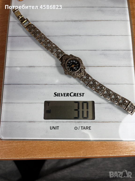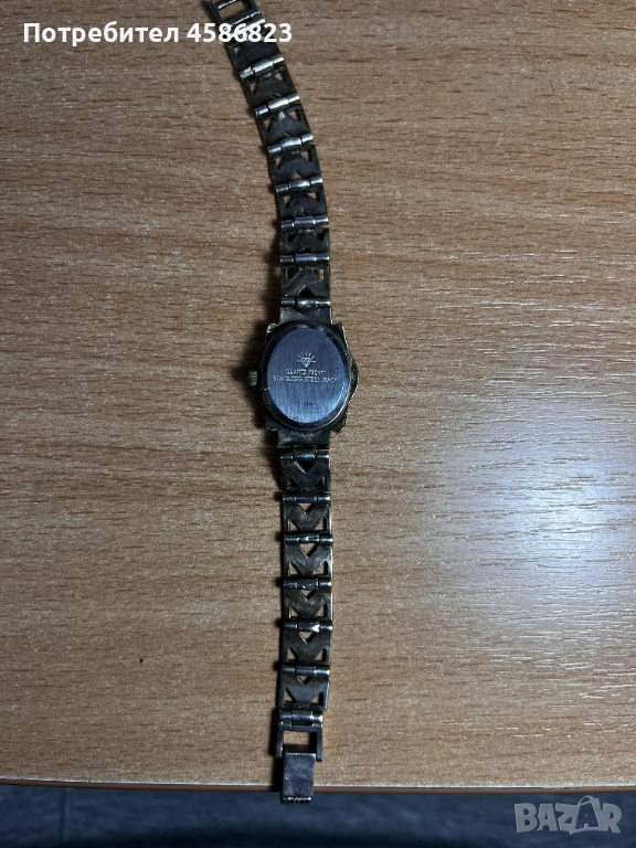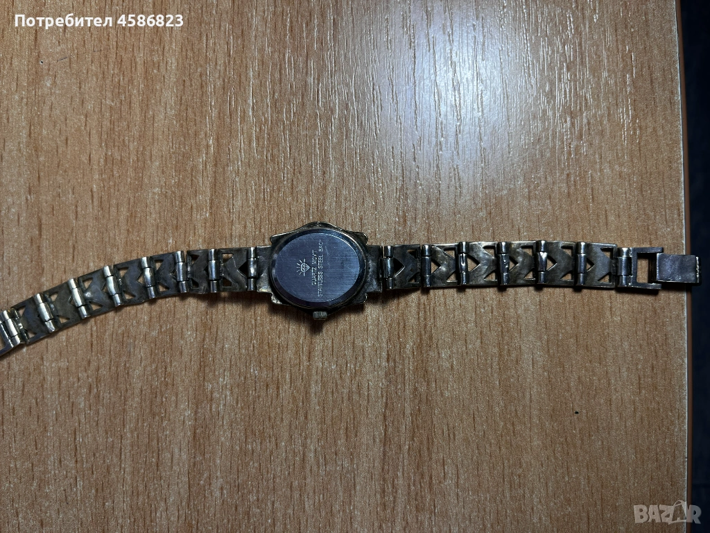 Продавам елегантен дамски сребърен часовник с ясно изразена винтидж визия. Моделът е с кварцов механизъм, черен циферблат с римски цифри и декоративна сребърна метална каса. Гривната е масивна, също в сребрист цвят, с геометрични орнаменти, което му придава характер и усещане за бижу, а не просто часовник.