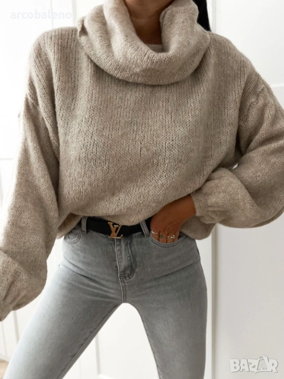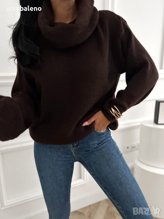 Мек, топъл и невероятно уютен, този дамски пуловер с щедра поло яка е задължителен за есенния и зимния сезон. Изработен от висококачествена смес от влакна — 48% акрил, 28% полиестер, 10% лиосел (вълна), 6% алпака, 6% вискоза, 2% еластан — той постига перфектния баланс: лек, не сърбящ и същевременно невероятно топъл.