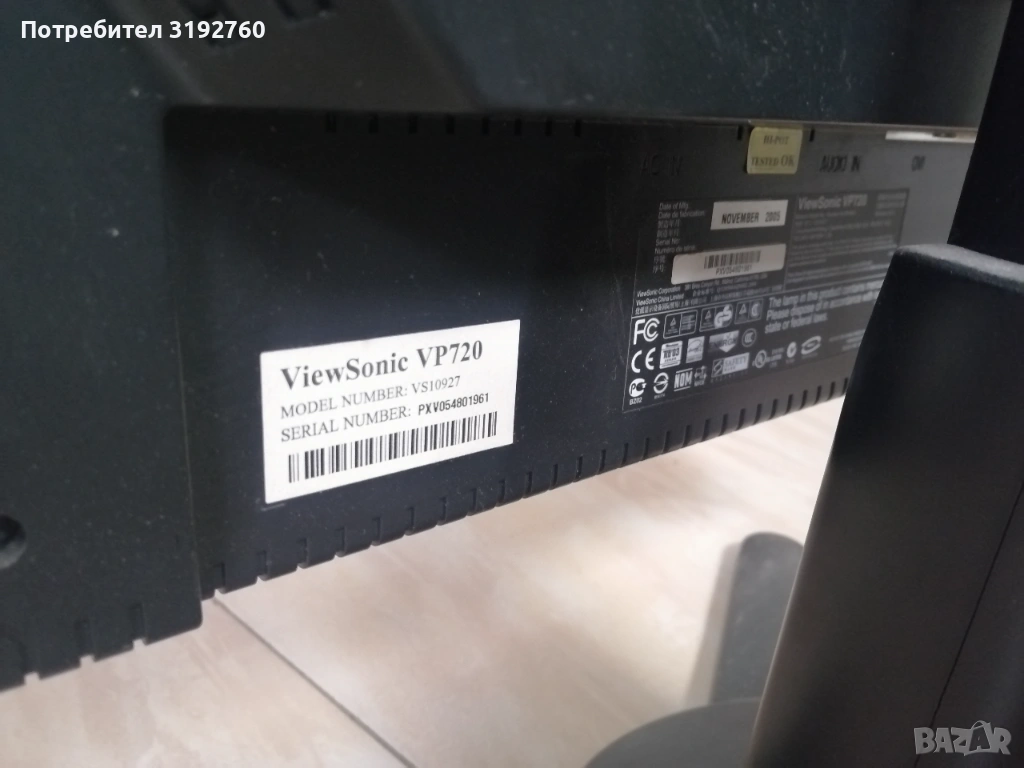 Монитор е ViewSonic VP930.