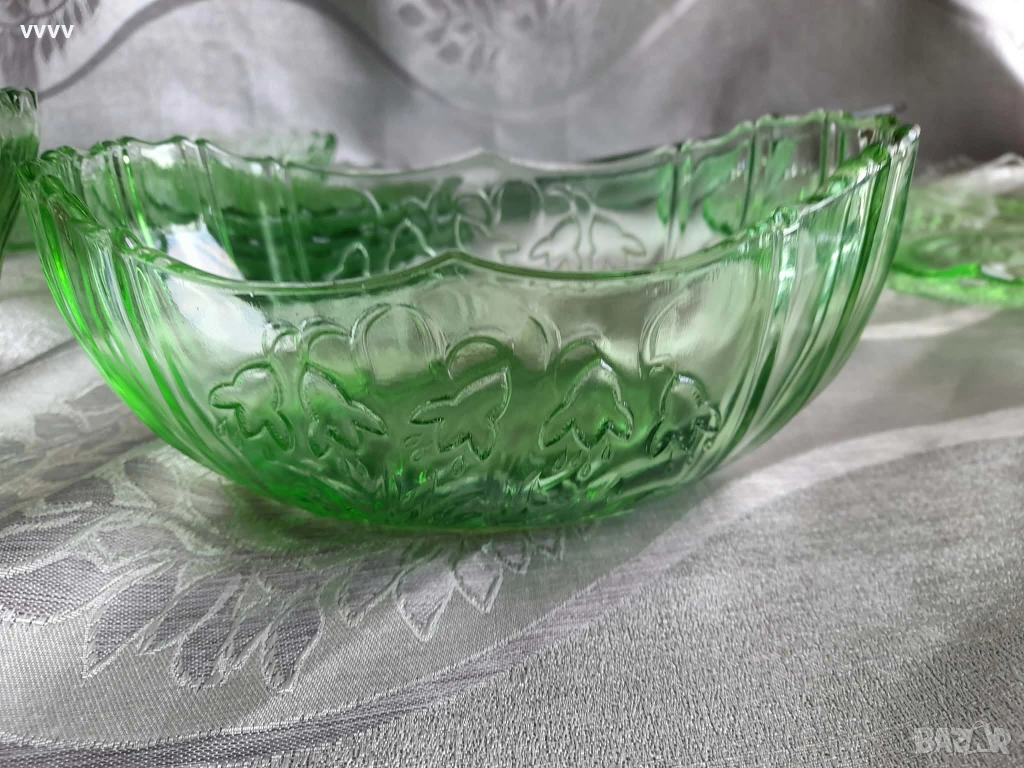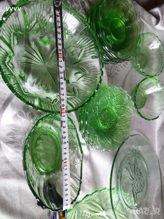 Купи, фруктиера, големи чинии, малки чинии от зелено стъкло → Обява 53131563