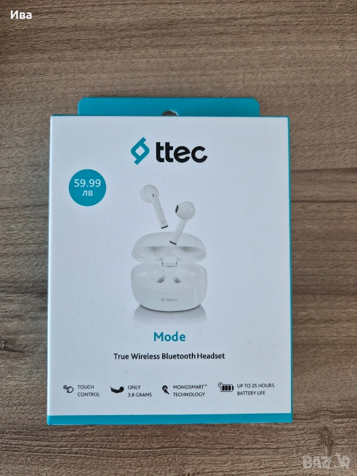 Към него мога да предложа и бели безжични слушалки ,също запечанани.