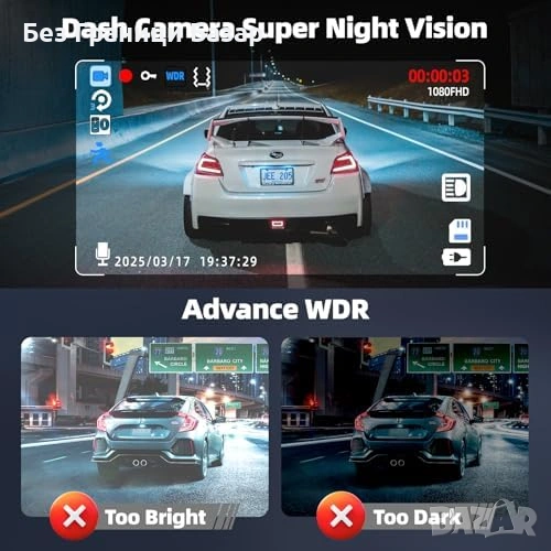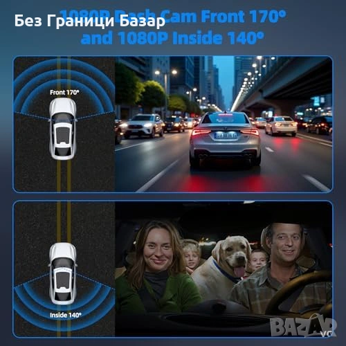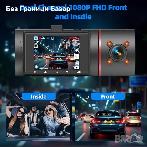 Нова 3 канална авто камера 2.5K 1080P WiFi предна задна вътрешна за кола