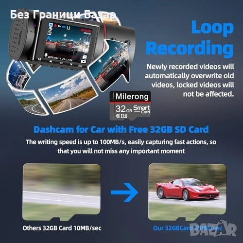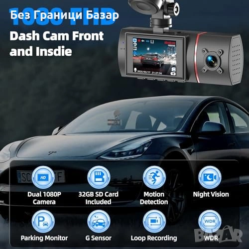 3-канална камера: предна 2.5K + задна 1080P + вътрешна 1080P