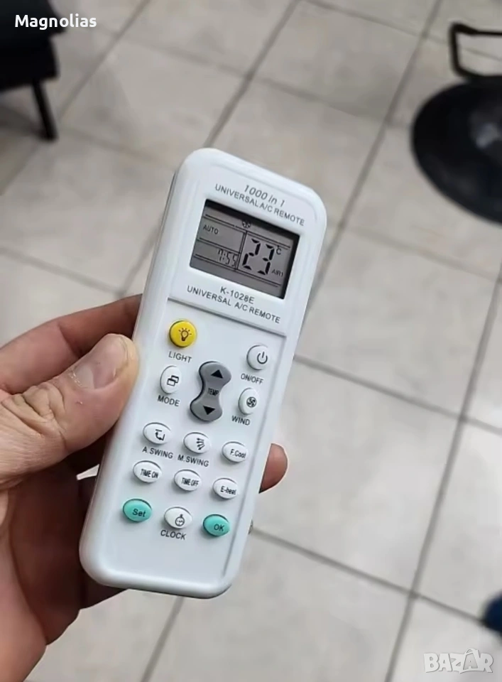 Описание: Универсалното дистанционно управление за климатик K-1028E е много необходимо нещо, тъй като дистанционното управление на климатика често се губи или счупва и тогава универсалното дистанционно управление ще ви дойде на помощ. Не винаги е възможно да се избере дистанционно управление специално за дадена марка климатик поради големия брой модели или защото даден модел може вече да не се произвежда. Има и климатици без никакви надписи, на неизвестна марка. В този случай ще ви бъде от полза универсално дистанционно управление. То е подходящо за почти всички модели климатици (над 4000 модела). Универсалното дистанционно управление има доста голям LCD дисплей, числата на който са много ясно видими. Разстоянието, на което дистанционното работи, е 8-10 метра. Управлението е просто и интуитивно. Дистанционното управление има и следните функции: Часовник Таймер за включване/изключване Функция за нощно осветление Универсалното дистанционно управление се захранва от 2 батерии AAA (не са включени). Характеристика: Модел: K-1028E Работно разстояние: 8-10 метра LCD дисплей: Да Съвместимост: повече от 4000 модела Тип: Универсално Дистанционно управление Захранване: 2 x AAA Батерии (Не са Включени) Размер: 13,2 см x 5 см x 2 см Комплект за доставка: Универсално дистанционно управление за Климатик K-1028E Тип: Дистанционно Управление за климатици