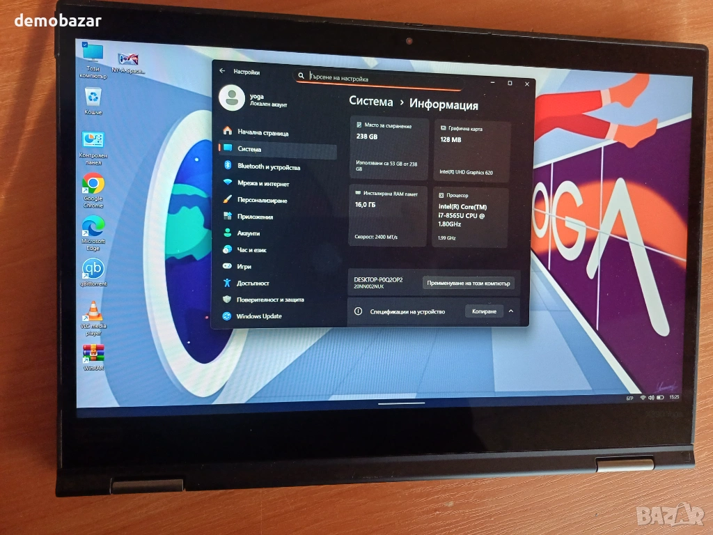 Видеокартa: Intel UHD Graphics 620 - 4GB споделена памет