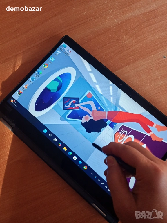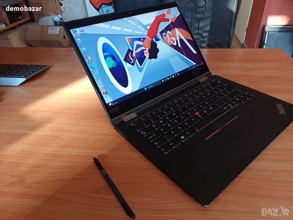 hinkPad Yoga X390 покрива 12 военни изисквания за издръжливост и е преминал над 200 проверки за качество, за да гарантира, че ще работи безпроблемно в екстремални условия. Лаптопa разполага с мощен процесор i7 и бърза DDR4 памет, както и най-бързия стандарт SSD NVMe. Дисплея е IPS с резолюция FullHD и професионален тъч от Wacom с активна писалка. Клавиатура с подсветка. Има вграден 4G модул за мобилен интернет. Батерията е оригиналната и държи до 5 - 7 часа и върви с оригинално зарядно.