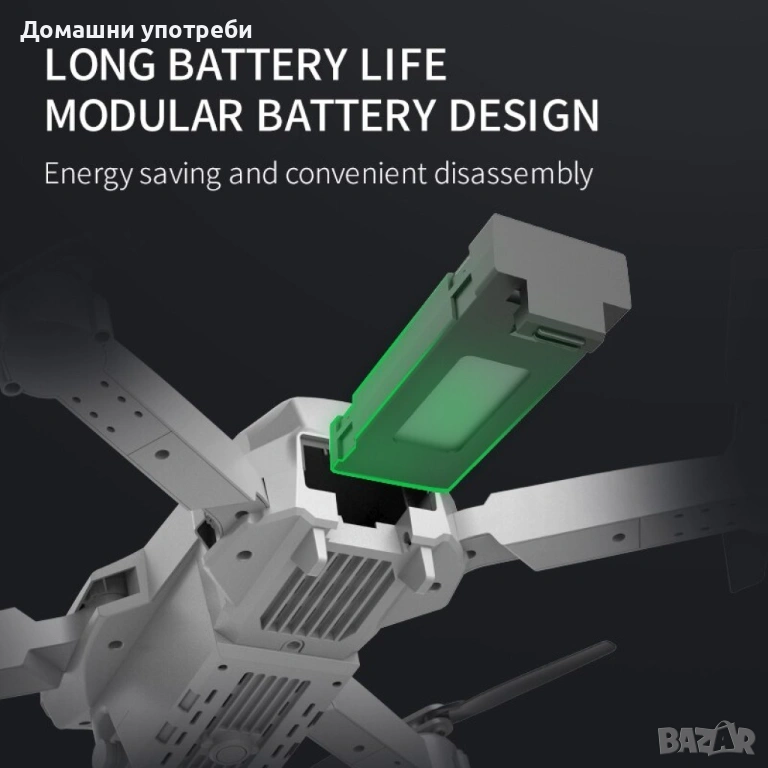 Дрон, 4k HD двойна камера/ Технически характеристики: Тип продукт: Дрон; Маневреност: Въздух; Захранване: Акумулатор; Състояние: Сглобен; Материал: Пластмаса; Цвят: Сив; Операционна система: Android, iOS; Свързаност: Wi-Fi; Тип акумулатор: Йонно - литиева батерия, 3.7V 540 mAh; Максимална дистанция: 150 м; Автономия при полет: 12 мин; Видео резолюция: Full HD, 4К; Поддържащи устройства: Смартфон; Работна честота: 2.4 GHz; Дистанционно: Да; Батерия на дистанционното: 3х АА, 1.5V; Функции: Автоматично кацане, Автоматично издигане, Сгъваем; Лесен за съхранение; Лесен за управление; Чиста и ясна картина със страхотни изображения; Размери: Разгънат: 25х25 см, Сгън: 12.5х 8.1 см.