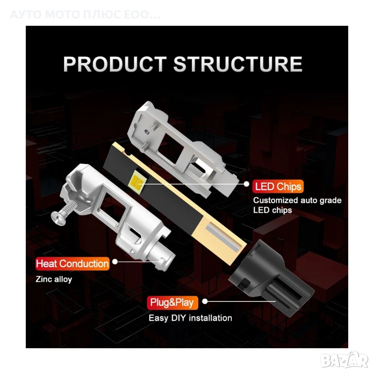 Разположението на диодите е съобразено със стандартите на халогенните крушки.