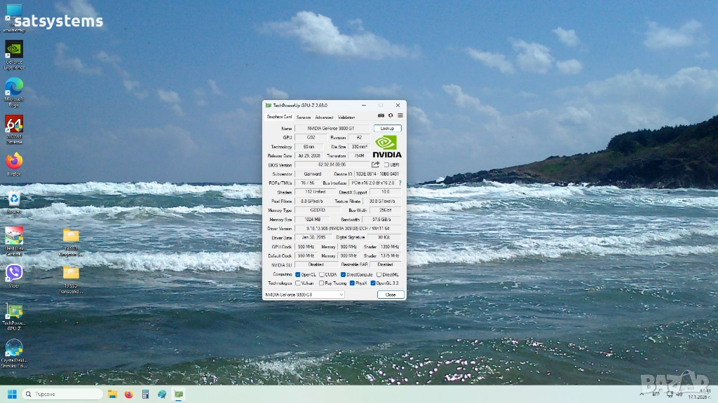 Chipset/GPU Model: NVidia GeForce 9800GT/G92GT