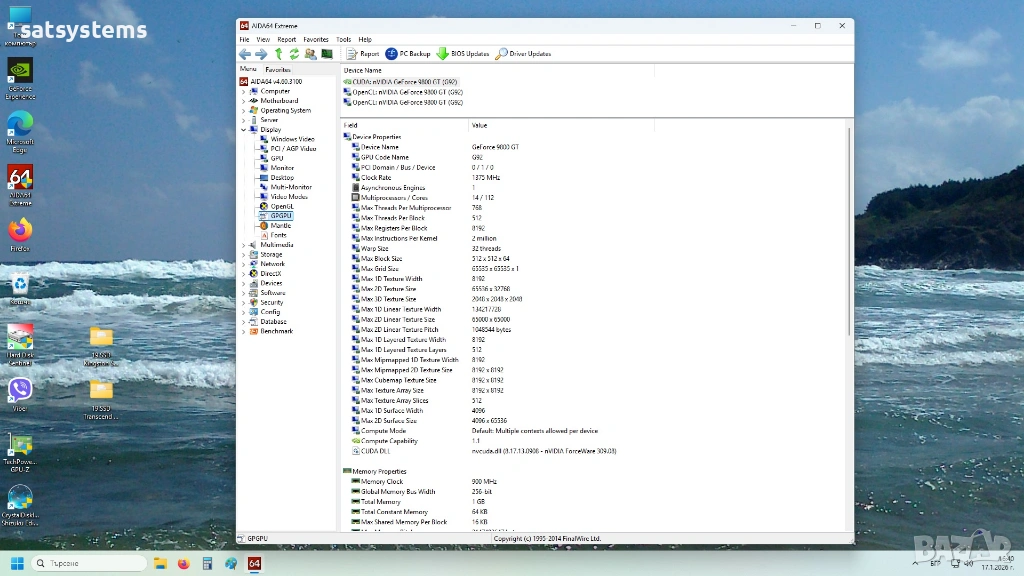 Model: NVidia GeForce Gainward 9800 GT