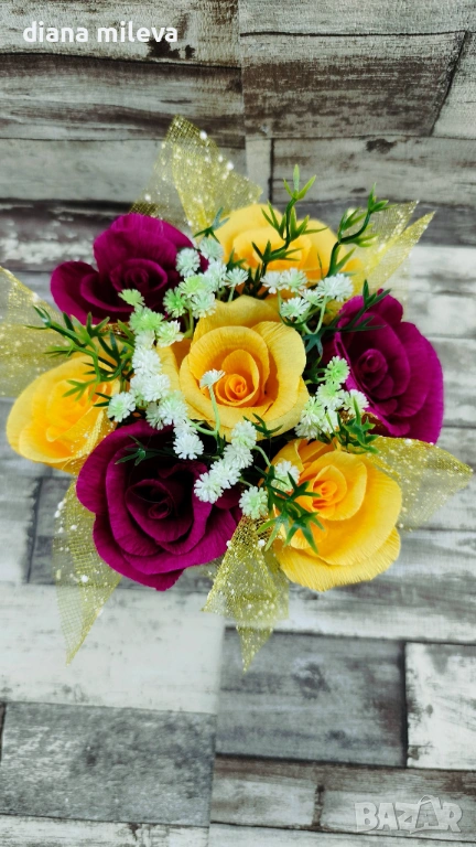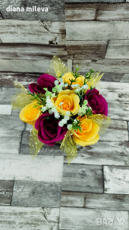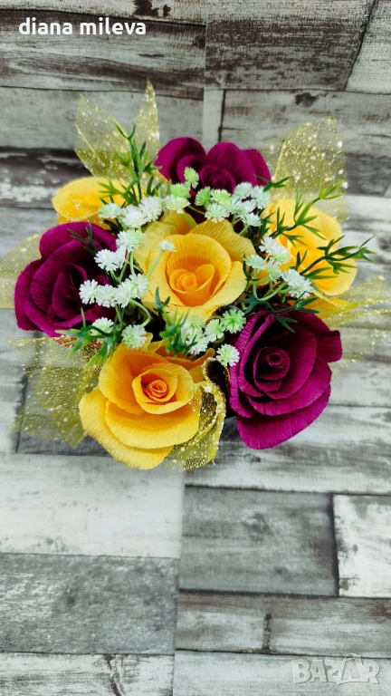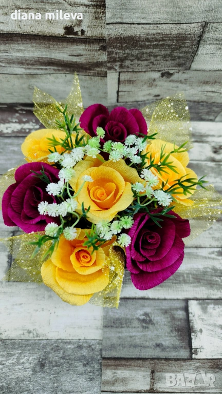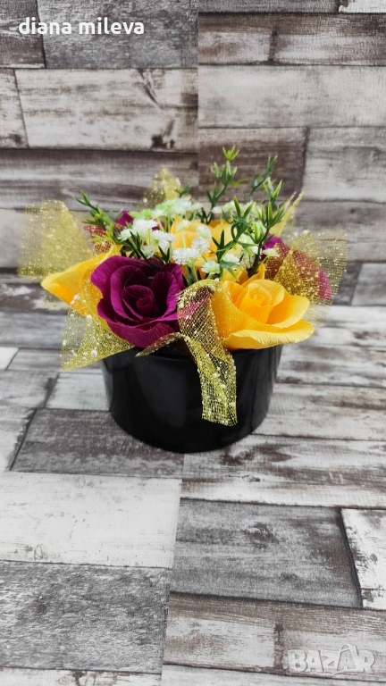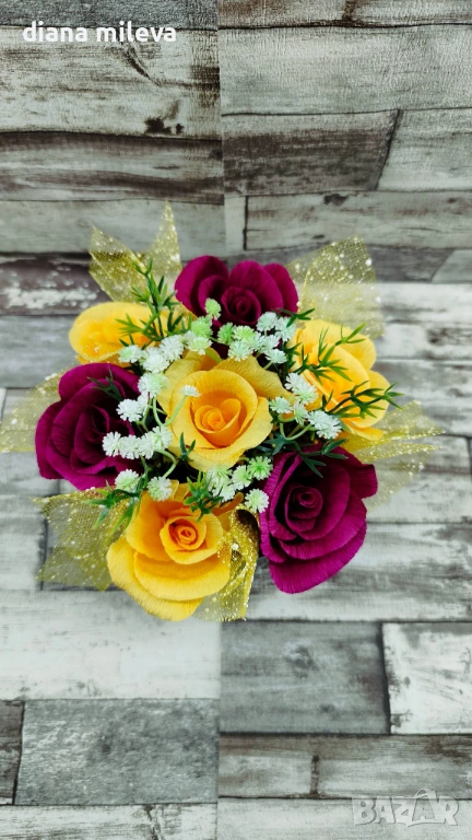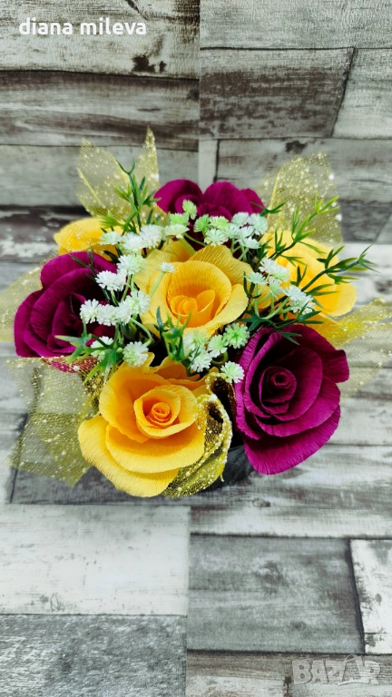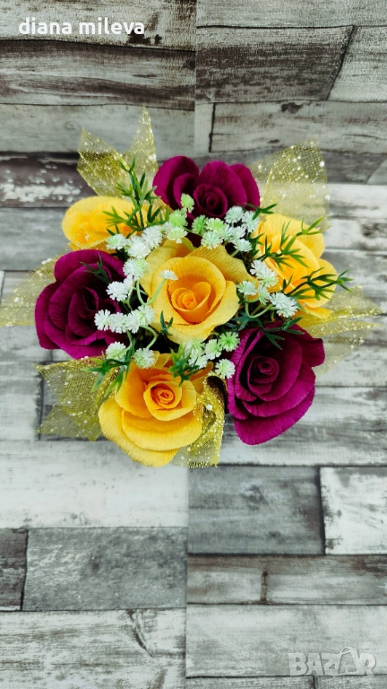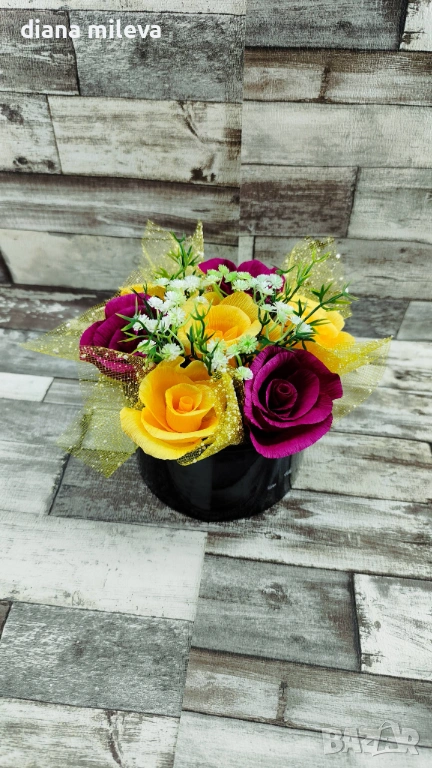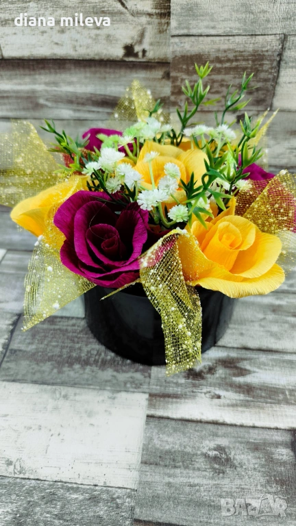 Кашпа с рози от креп хартия!! → Обява 53133030