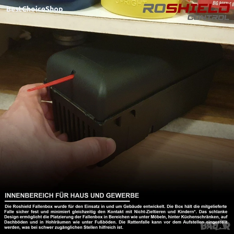 БЕЗОПАСНОСТ НА ПЪРВО МЯСТО: Кутията предотвратява достъпа на нецелеви животни до механизма на капана