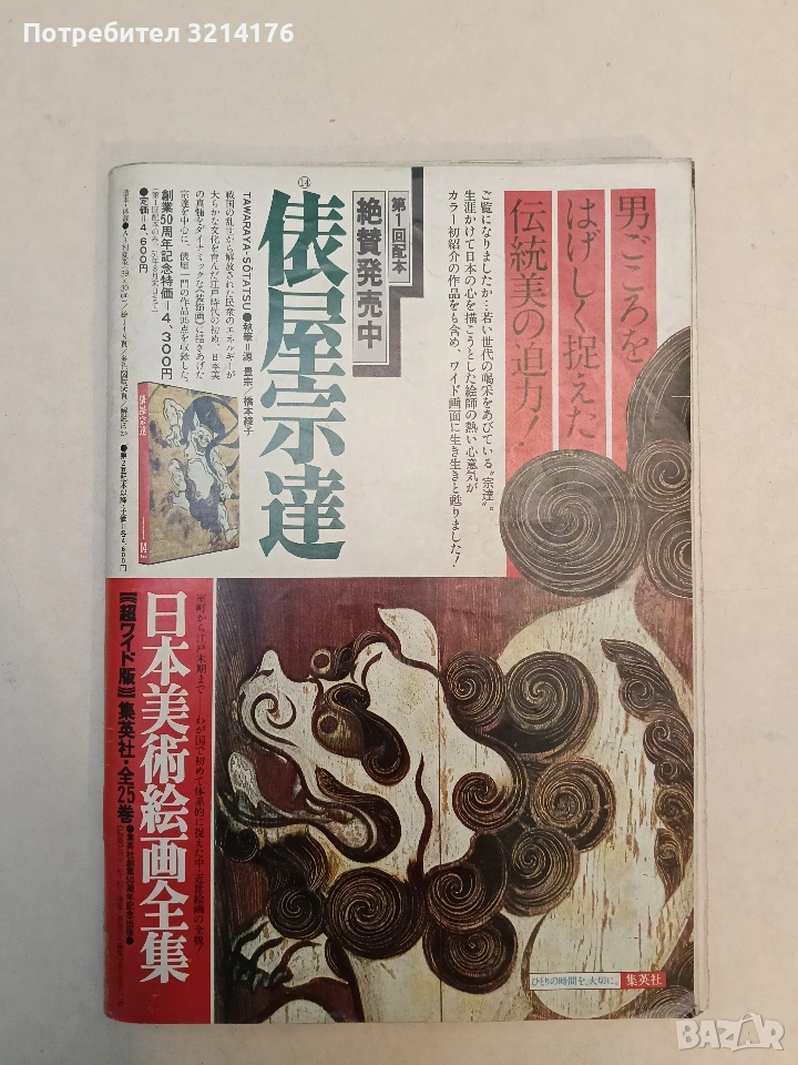 Виждали ли сте го? Сотацу получава аплодисменти от по-младото поколение. Страстният дух на художника, прекарал живота си в опити да изобрази японския дух Включително произведения, показани за първи път в цвят, те са пресъздадени на широк екран! Издание на глава 1 Сега в продажба Таварая Сотацу TAWARAYA-SÕTATSU 款花源豊宗/Хашимото Аяко В началото на периода Едо, когато енергията на хората, освободени от бурните времена на периода на Воюващите държави, насърчава щедрата култура, той създава динамични декоративни картини, които улавят същността на японската красота. Колекцията включва произведения от школата Таварая, с фокус върху Сотацу. Специална цена за 50-годишнината: 4300 йени (само първо разпространение, края на годината) Каталожна цена = 4600 йени Пълна колекция от картини на японското изкуство ・Свръхшироко издание, Шуейша, 25 тома