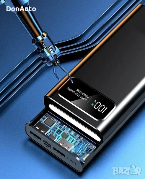 Външната батерия 200000mAh предлага изключително висок капацитет и 120W супер бързо зареждане, което я прави идеална за пътуване, работа, къмпинг и продължителна употреба далеч от контакт. Благодарение на LED цифровия дисплей винаги виждате точния процент заряд.