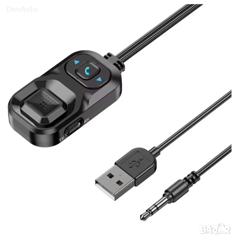RX (Receiver): приема звук от телефон или таблет и го изпраща към автомобила или външни колони.