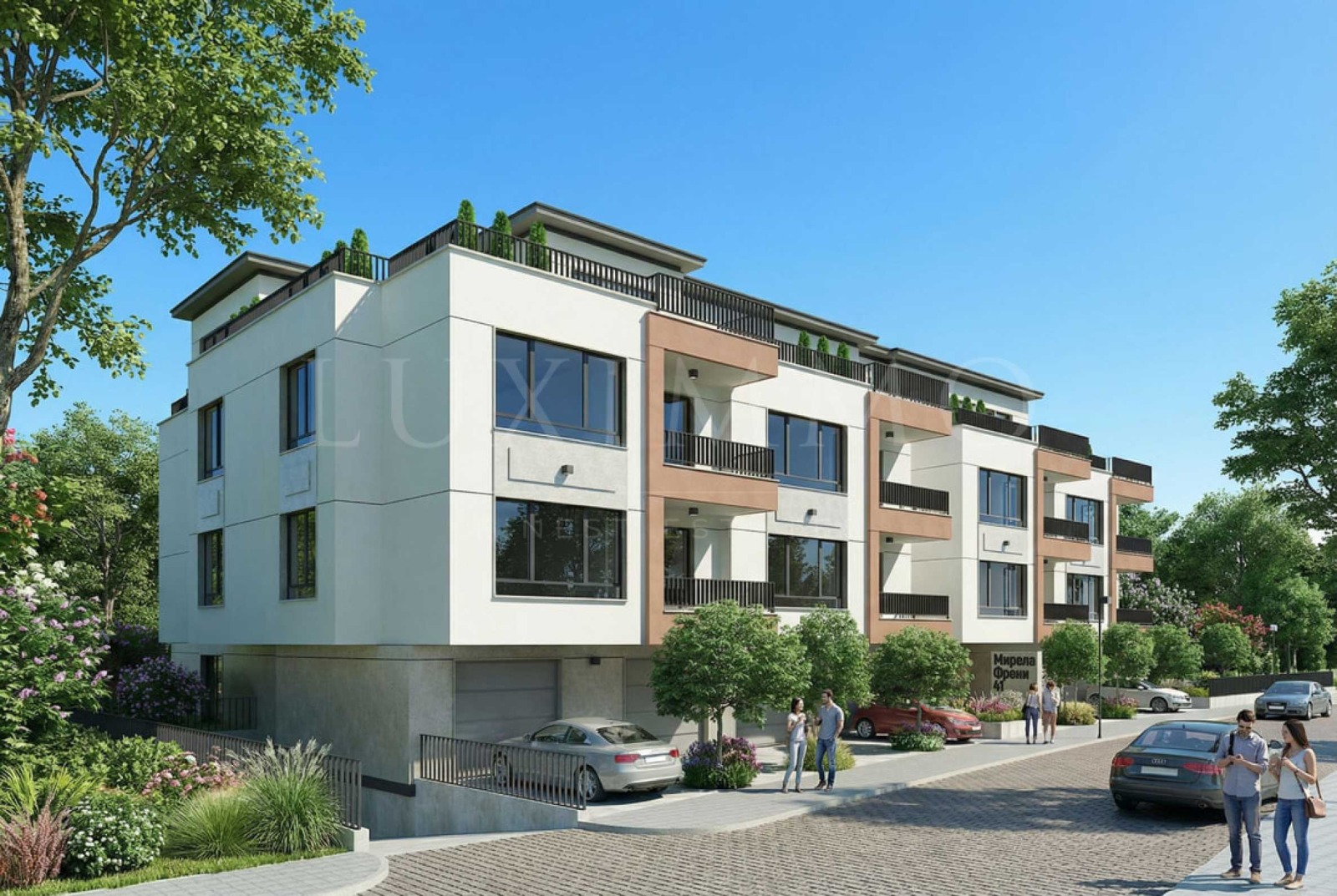 Имаме удоволствието да Ви представим многофамилна жилищна сграда на 3 надземни етажа с един подпокривен етаж и подземен паркинг с достъп посредством рампа с удобен наклон. С предвидените изцяло озеленен двор (без нито едно паркиране), подземни индивидуални складови помещения, 27 индивидуални гаража - част от които двойни, за нуждите на 22 апартамента, с осигурена мощност за зареждане, сградата предлага изключителен бутиков начин на обитаване, в спокойна среда и функционални разпределения.