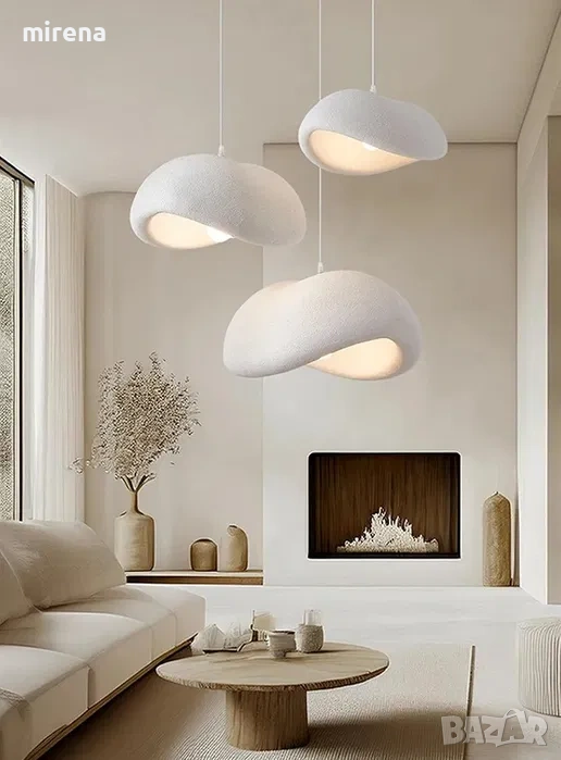 Модерна висяща лампа Висящата лампа е с уникален дизайн в японски стил Wabi-Sabi, който не само добавя нотка елегантност, но и превръща пространството ви в райско кътче на спокойствието.