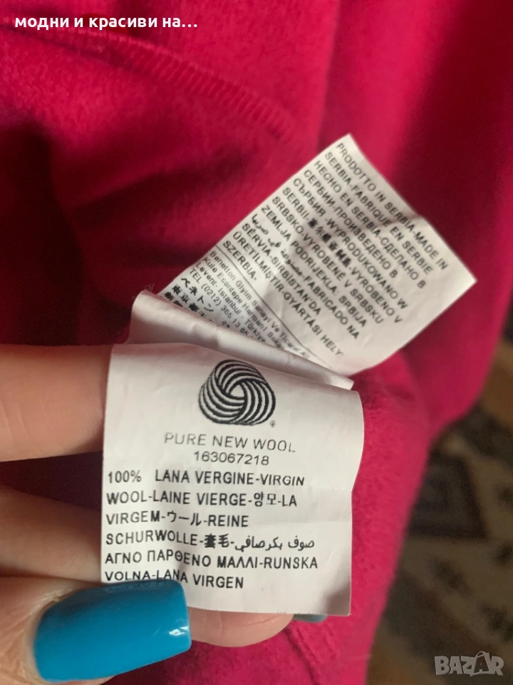 Жилетка Benetton цвят фуксия ( мерино,
