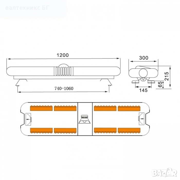 Размер: (ДxШxВ) 120/30/13см – осигурява отлична видимост на големи разстояния