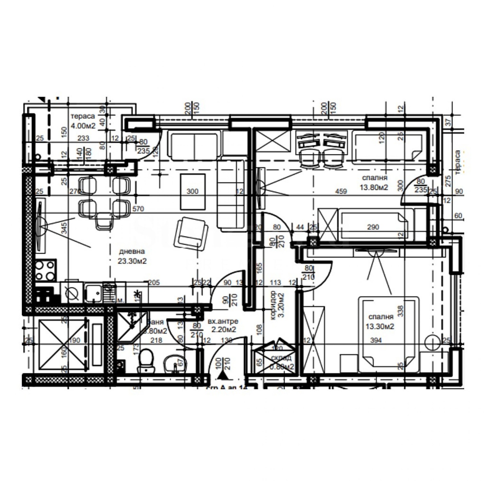 две тераси.Апартаментите се предават в степен на завършеност по БДС.