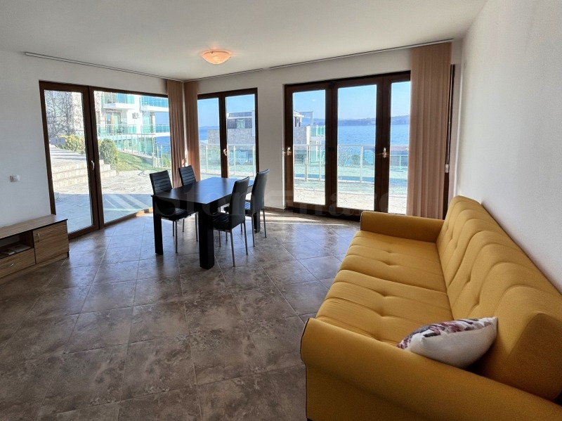 Представяме светъл и просторен двустаен апартамент с изключителна гледка към морето и басейна, разположен в луксозен затворен комплекс на първа линия в Созопол.