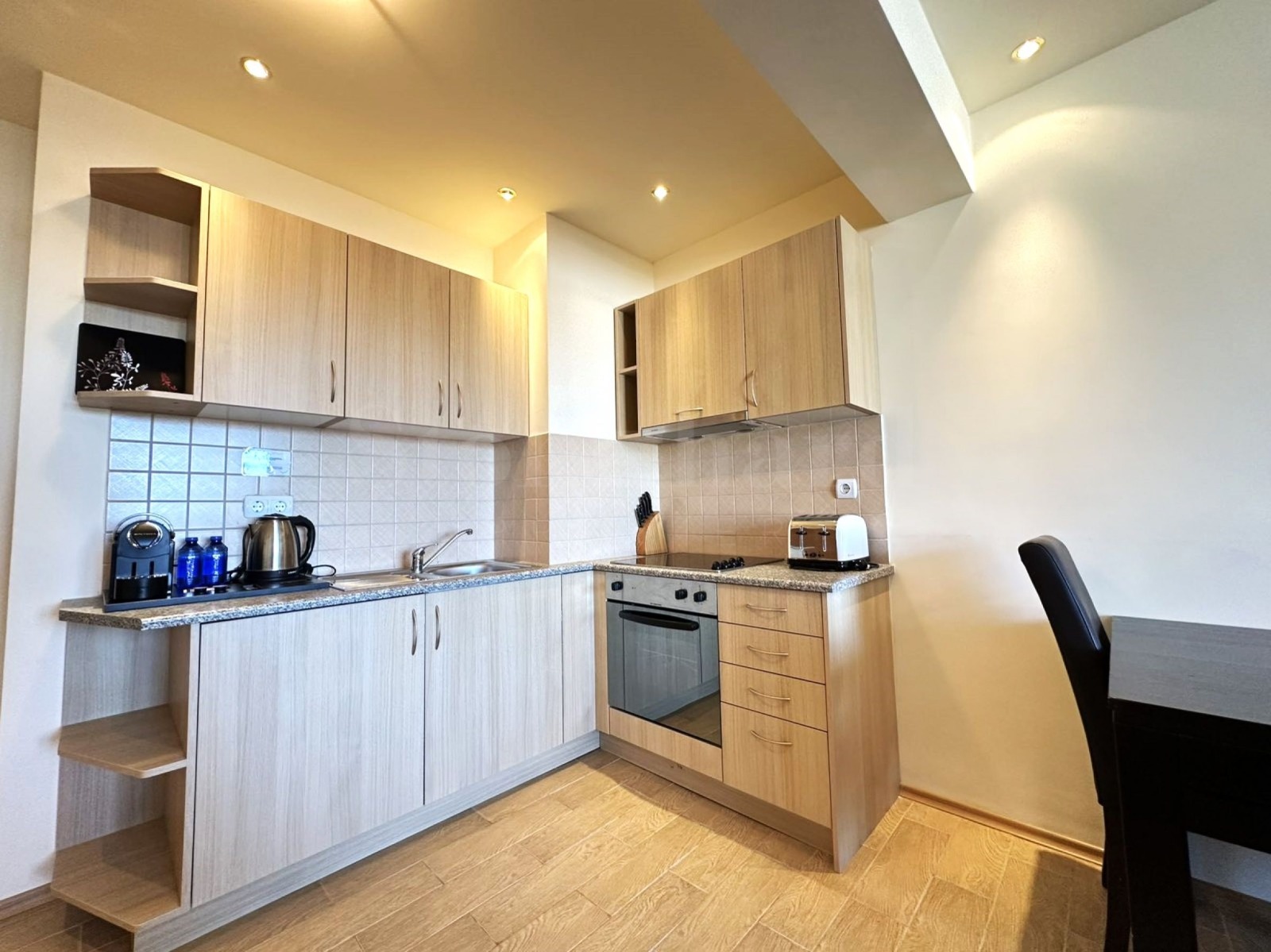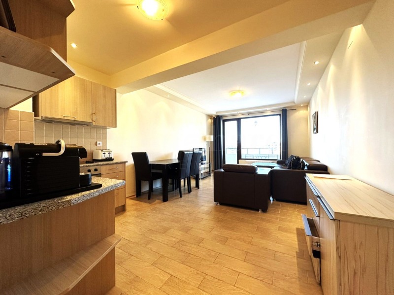 Представяме напълно обзаведен южен двустаен апартамент, намиращ се в целогодишен комплекс.