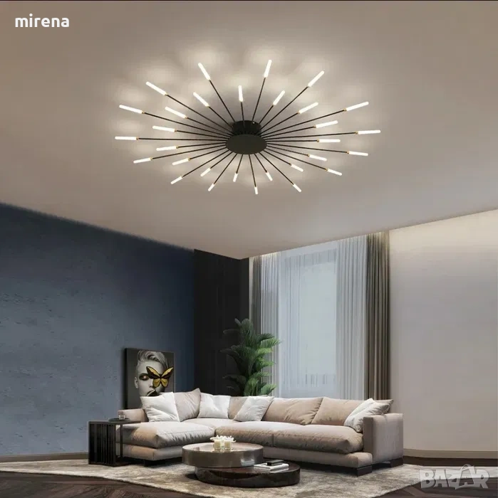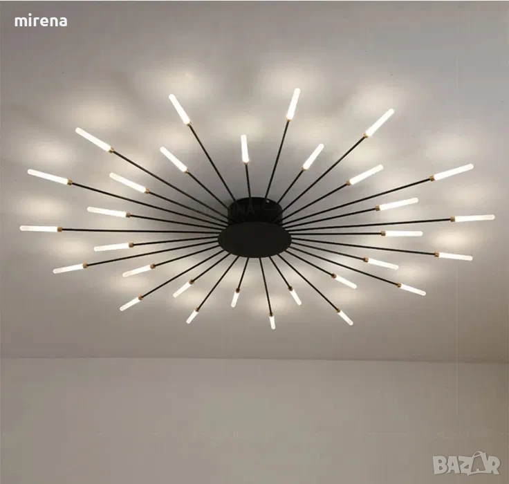 Модерна LED таванна лампа с фойерверки, линейна таванна лампа Sputnik, креативна форма на цвете, скандинавска полу-вградена таванна лампа за хол, спалня, трапезария, полилеи (30 глави)