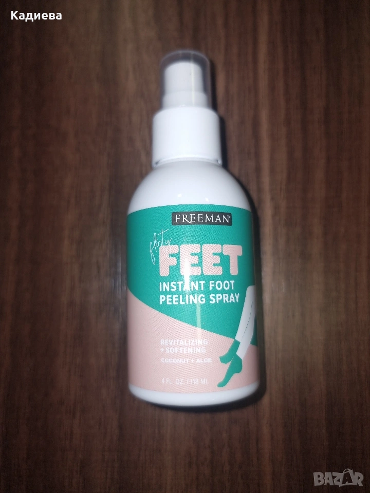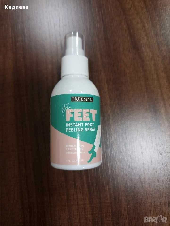 - корейски ексфолиращ пилинг спрей за крака - много лесен за употреба. Пръска се директно върху чисти и сухи крака, след което разтриваме. За допълнителен пилинг ефект може да се използва и с ексфолираща ръкавица. Перфектен е за груби,сухи и напукани пети. Количество : 118мл. Купуван е за 15,36лв., продавам го за 4€.