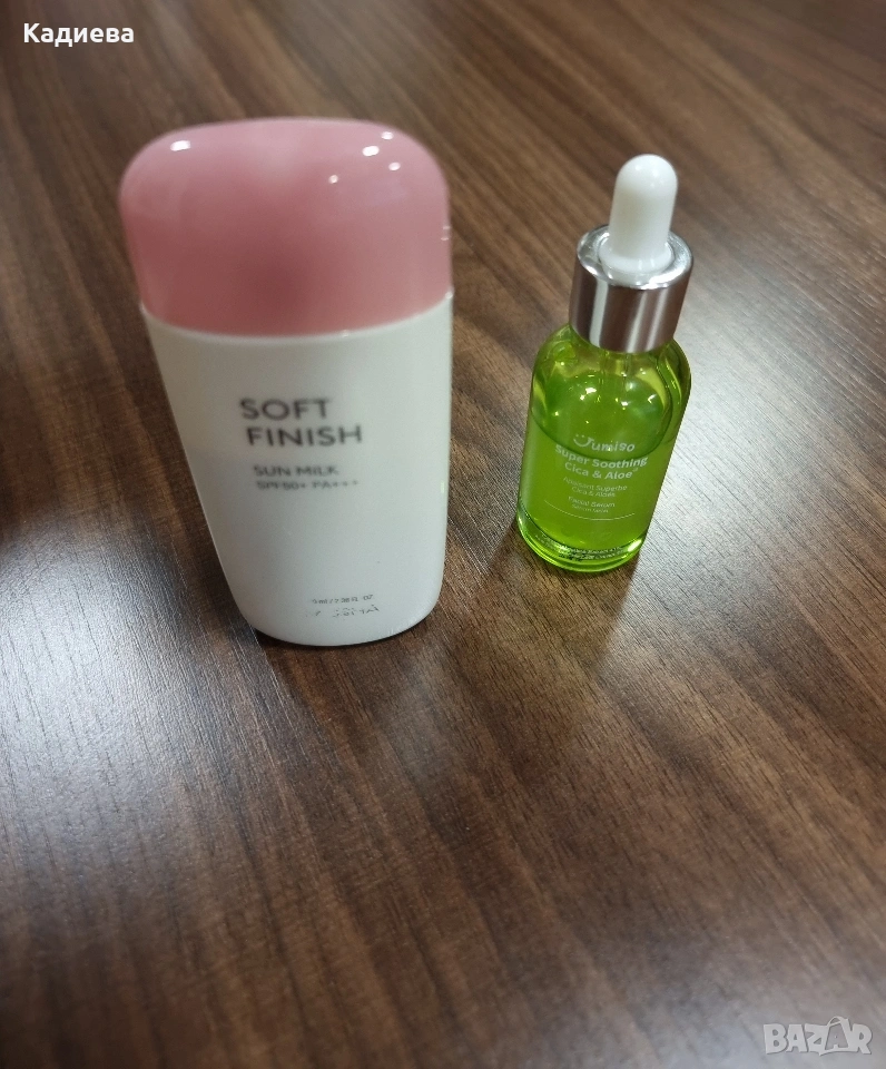 - Jumiso Super Soothing Cica & Aloe Facial Serum е силно концентриран серум, предназначен да успокоява раздразнена и чувствителна кожа, като същевременно подсилва кожната бариера и осигурява дълбока хидратация. - купуван е за около 40 лв, продавам го за 7€.