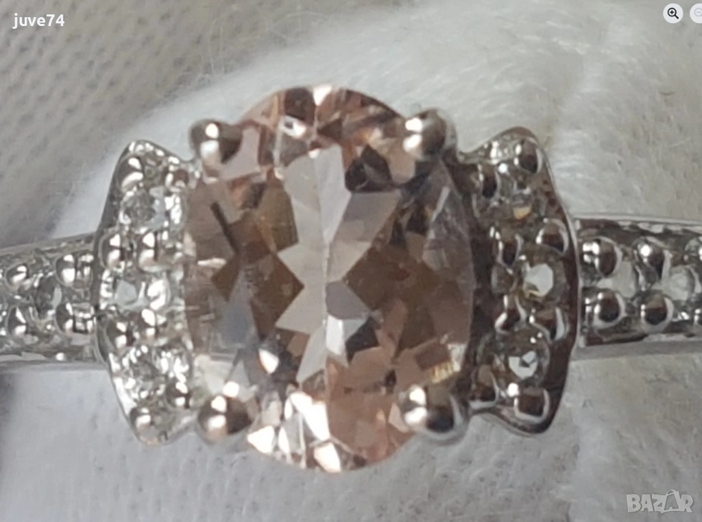 СРЕБЪРЕН ПРЪСТЕН С МОРГАНИТ (МОЗАМБИК) И БЯЛ ТОПАЗ (ИНДИЯ).ОТЛИЧНО КАЧЕСТВО И ЧИСТОТА НА КАМЪНИТЕ.ОБЩО ТЕГЛО-1.24 кт. РАЗМЕР НА МОРГАНИТА-7.75х5.75 мм. РАЗМЕР НА ПРЪСТЕНА-57. ВЪТРЕШЕН ДИАМЕТЪР-18.2 мм.
