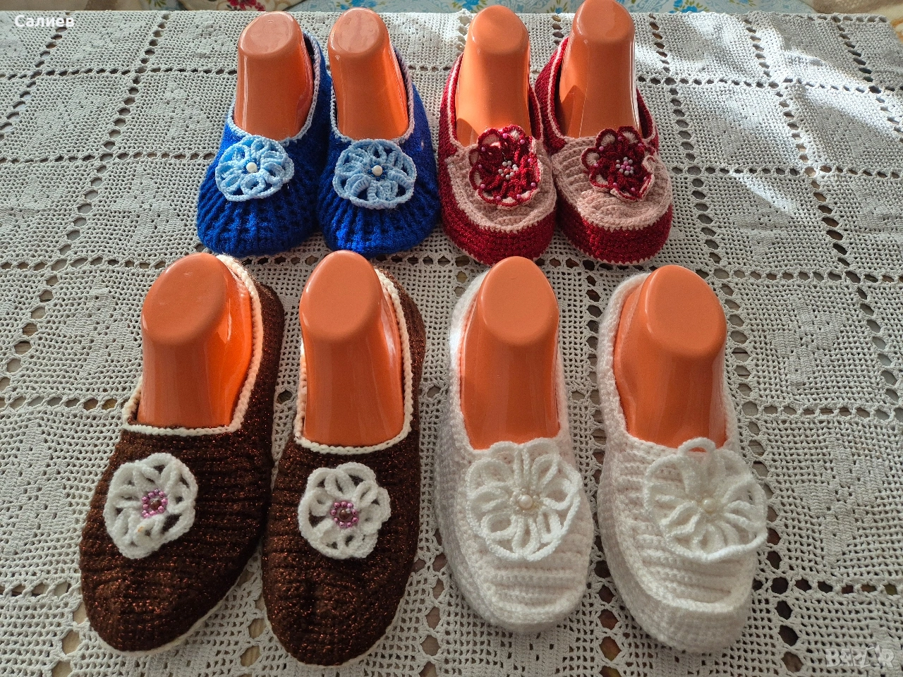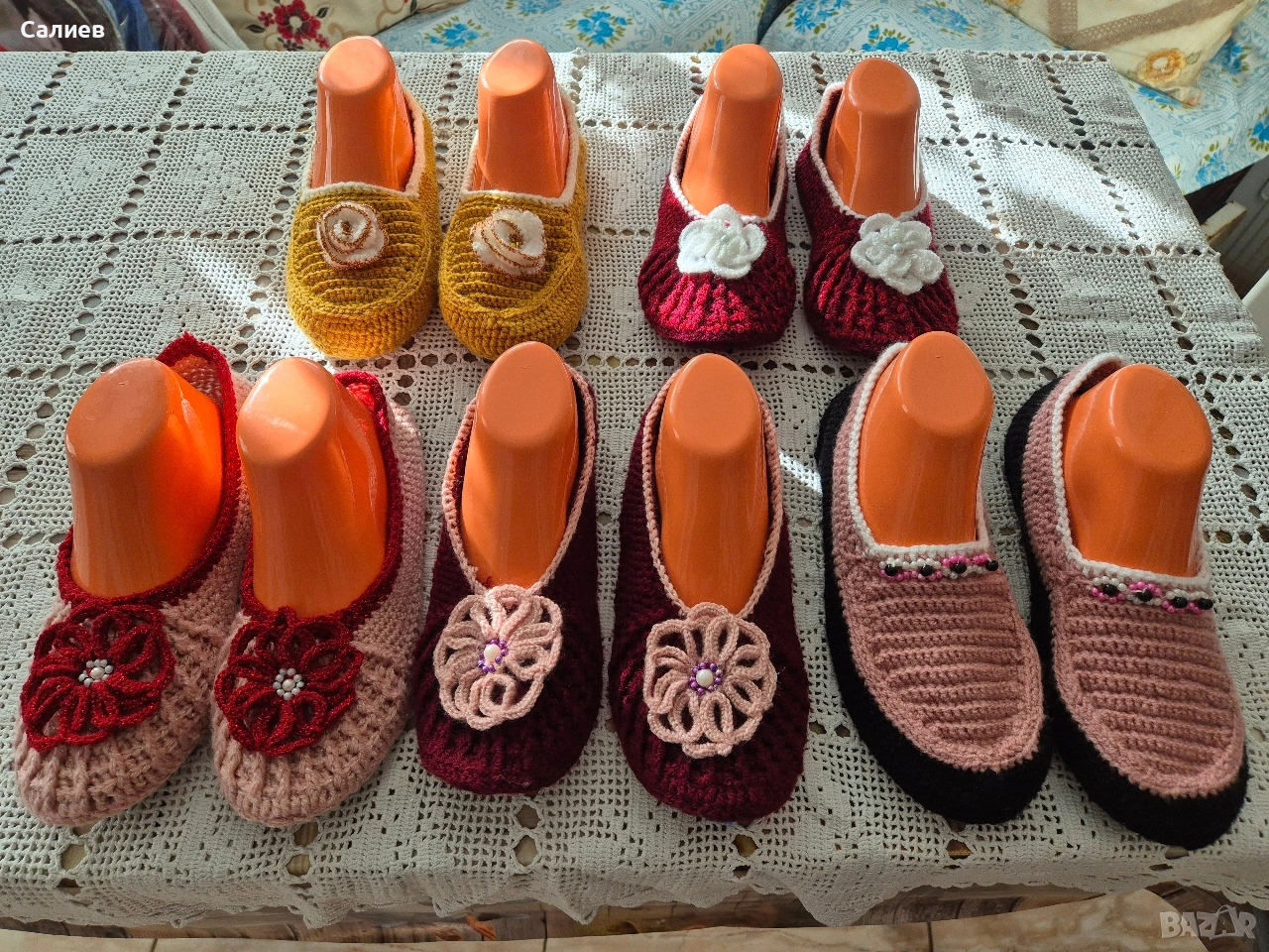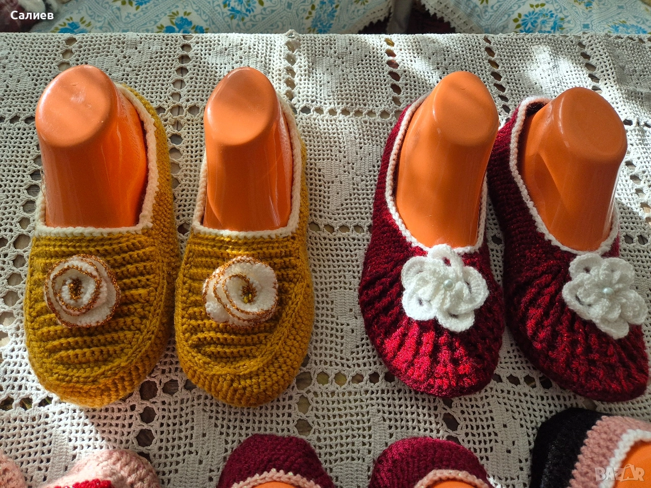 Ръчно плетени дамски терлици с подметка с номера 37-38 и 39-40, плетени от майка ми.