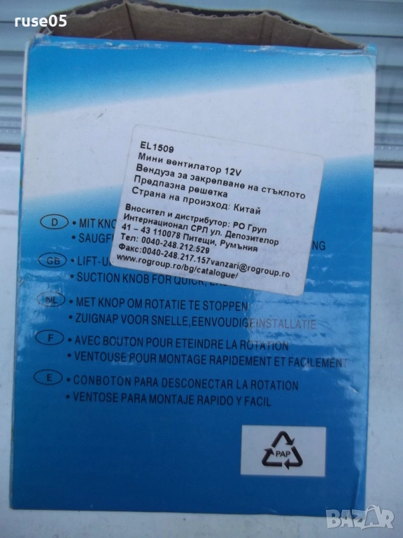 Вентилатор автомобилен "EL 1509" работещ нов → Обява 53134774