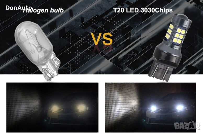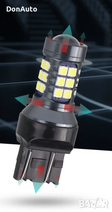 2 бр. T20 LED W21/5W – Супер Ярки CANBUS Крушки за Мигачи, Стоп, Задни – Жълт / Червен / Бял