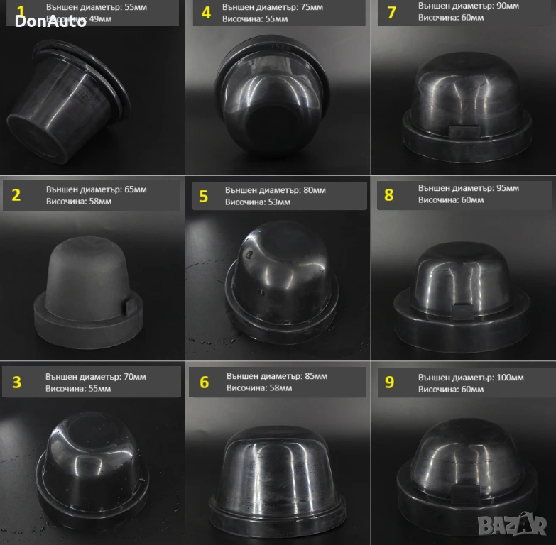 2 бр. гумени капаци за фарове – водоустойчиви, прахоустойчиви, 11 модела 31–100 мм