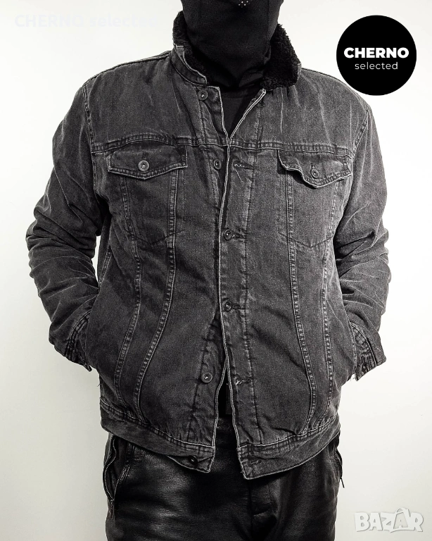 ZARA дънково яке, sherpa denim jacket, trucker яке, мъжко зимно дънково яке, яке с шерпа, workwear яке, slim fit denim jacket