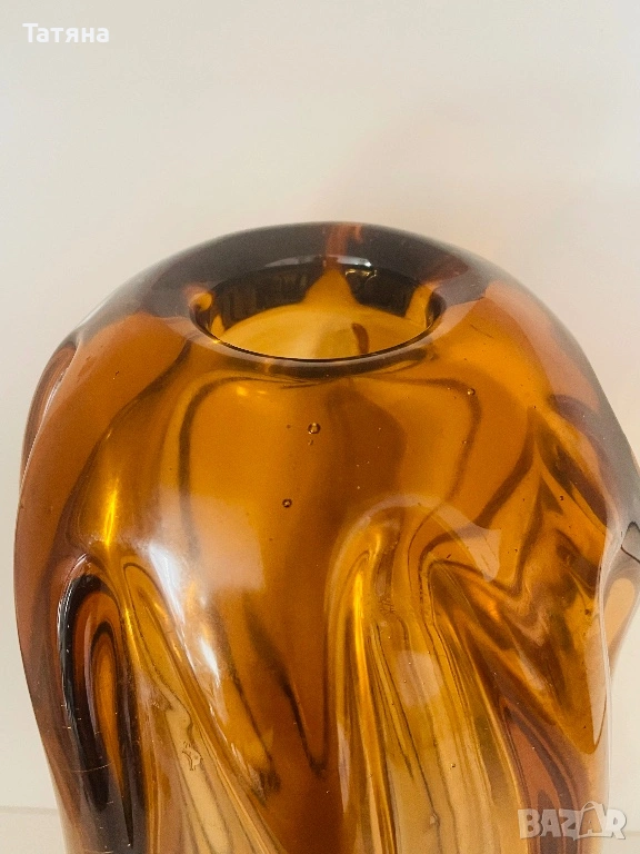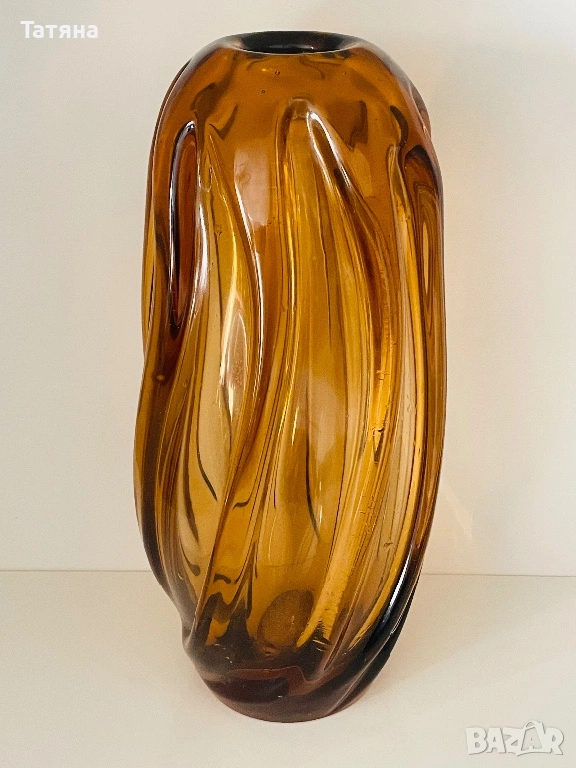 Стъклена ваза, стил Мурано, цвят медено-кехлибарен → Обява 53135370