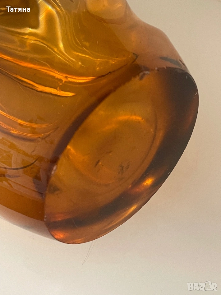 Винтидж стъклена ваза, дебело, тежко стъкло, стил Мурано, цвят медено-кехлибарен, височина 33 см, в добро състояние, с леки следи от употреба