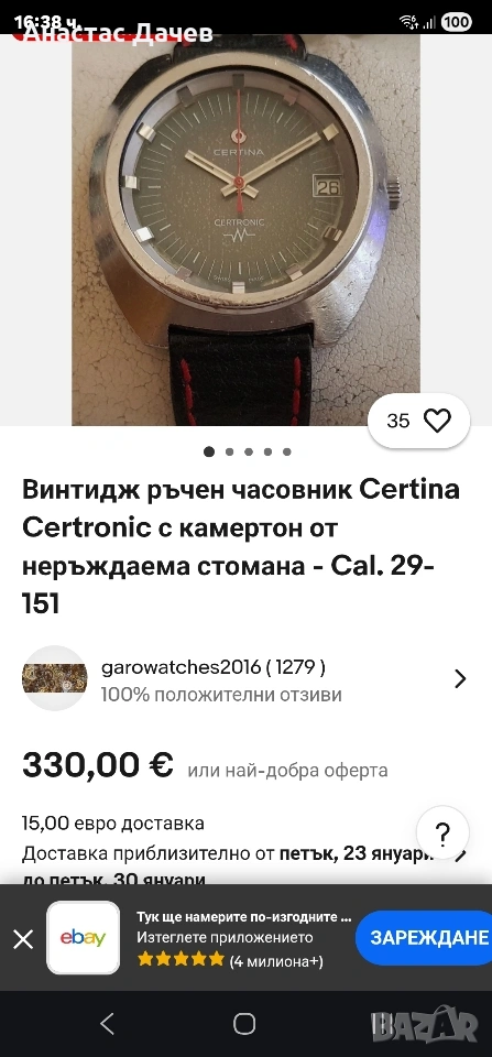 Винтидж часовник СERTINA - CERTRONIC → Обява 53135437