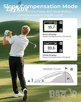 【Заключване на флага с вибрация и режим за легален наклон】 Вибрационните известия потвърждават заснемането на флага, дори на оживен фон. Включете режима за наклон за прецизни хълмисти снимки или го изключете, за да остане легален за турнира.