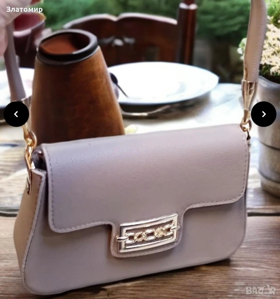 Малка дамска кожена чанта с тик-так закопчаване → Обява 53135480