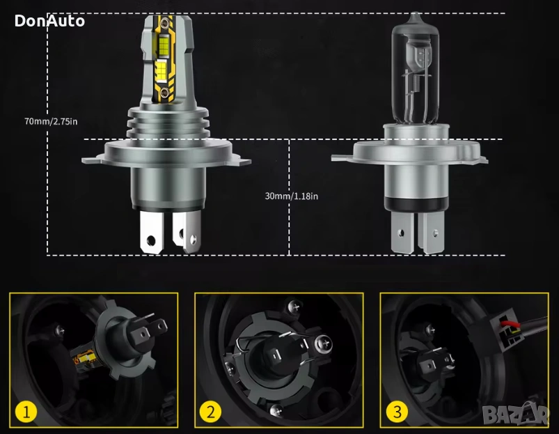 Високоефективни H4 LED крушки за фарове с къси и дълги светлини, създадени за максимална яркост, отлична видимост и лесен монтаж. Благодарение на Mini 1:1 дизайн с халогенна крушка, монтажът е бърз и без нужда от допълнителни адаптери.