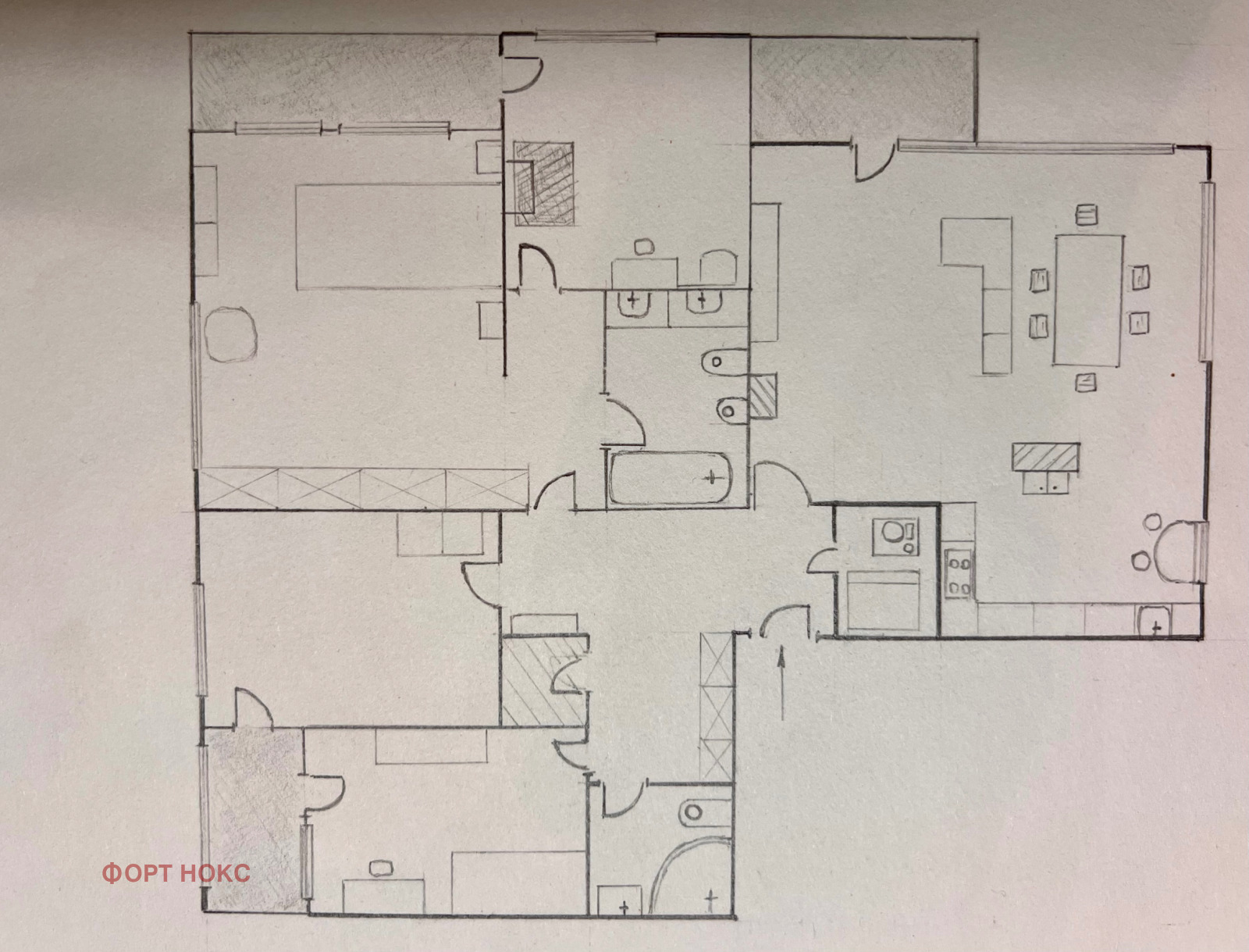 4 спални, като родителска спалня ~25 кв.м със самостоятелна баня