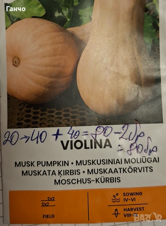 2. Тиква мускатна Виолина / Violina--наличност 483 бр. семена-20бр.-1 EUR