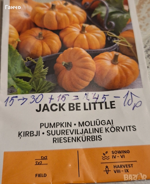 8. Тиква -Джак Би Литъл-наличност 170 бр. семена-10бр.-2 EUR