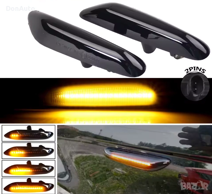 Динамични бягащи LED мигачи за калници, предназначени за различни модели BMW Серия 1, 3, 5 и X. Модерният бягащ светлинен ефект придава спортна визия, по-добра видимост и по-висока безопасност при смяна на посоката. LED технологията осигурява дълъг живот и надеждна работа без грешки.