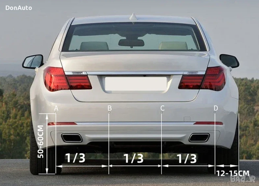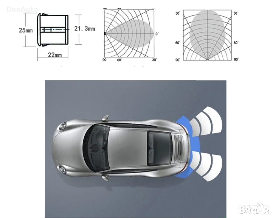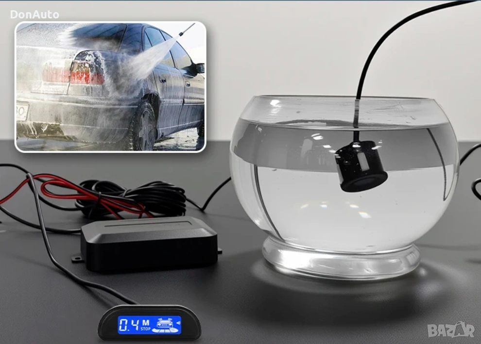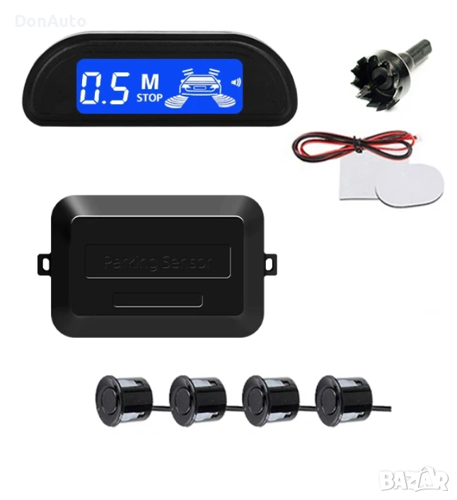 Автомобилна парктроник система с 4 ултразвукови датчика, предназначена за монтаж на задната броня. Осигурява надеждна помощ при паркиране чрез звуково предупреждение и LED дисплей с подсветка, който показва разстоянието до препятствията в реално време.