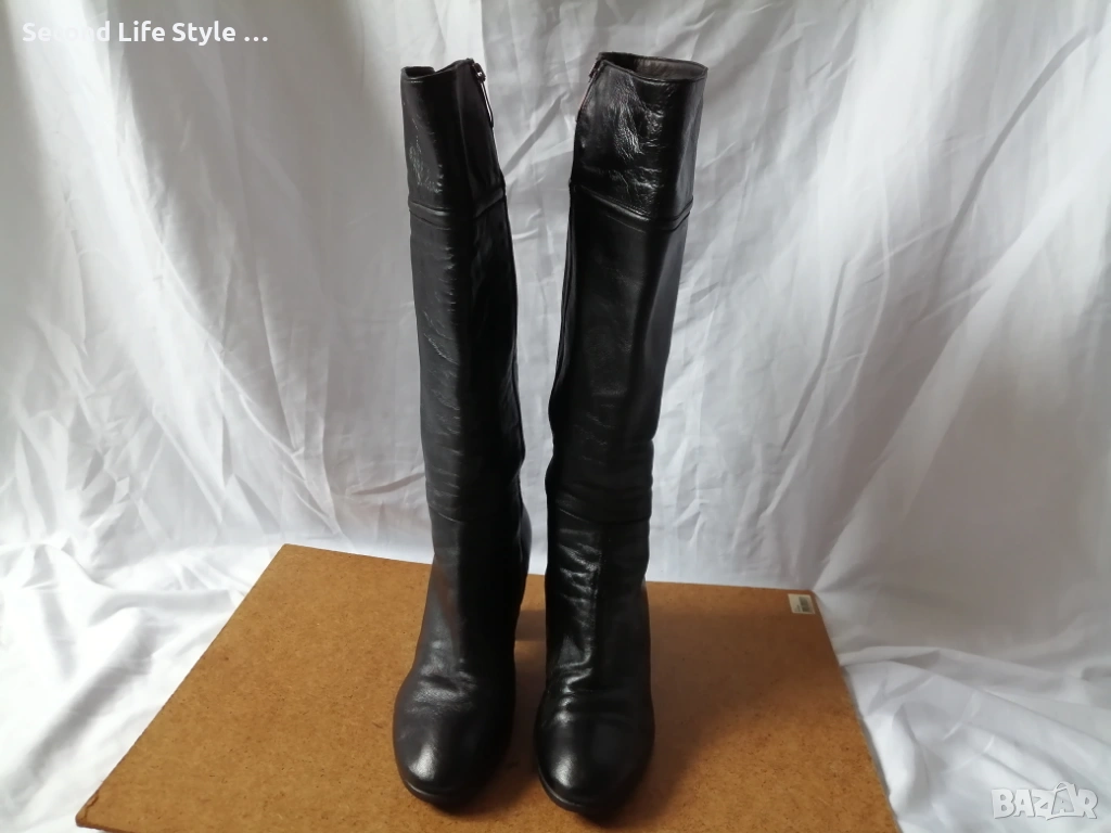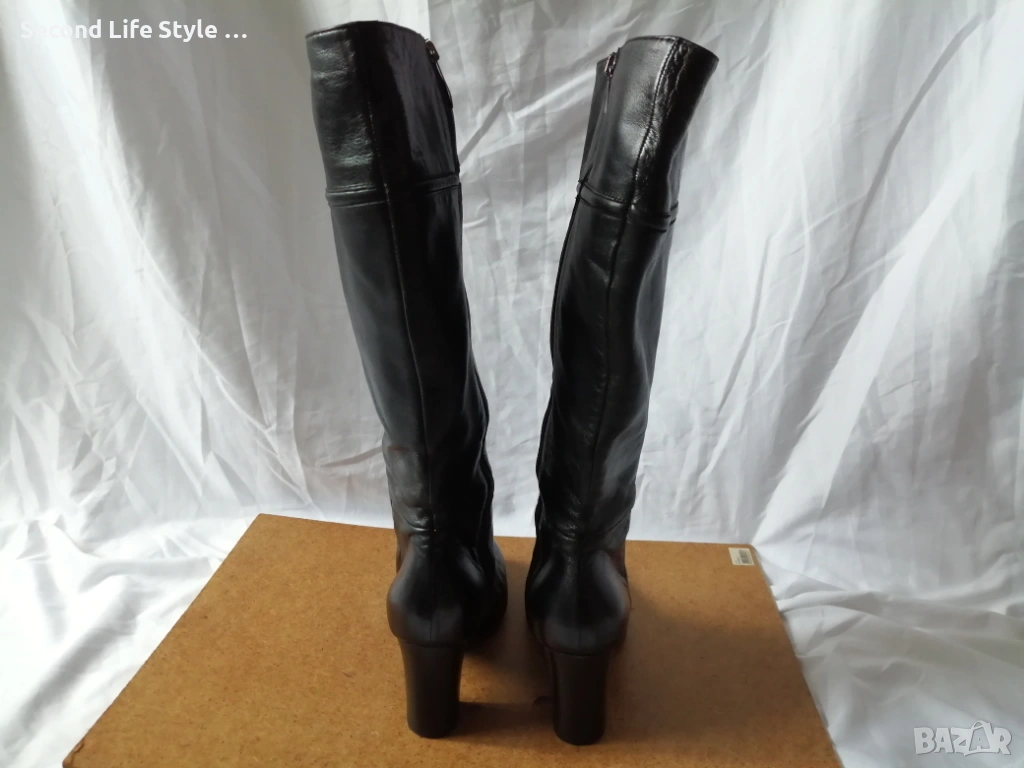 № 39 дамски ботуши естествена кожа - с висок ток; черен цвят